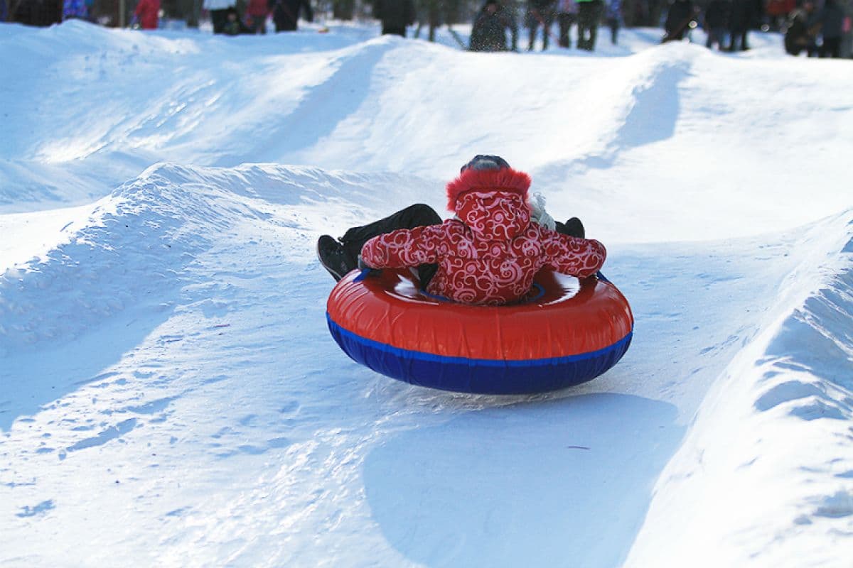 - кататься на тюбингах можно только на специально оборудованных трассах: ровных, с выделенными полосами, плоским съездом, уклоном не более 20-30 градусов, есть достаточное пространство для торможения и где соблюдается строгая очередность;