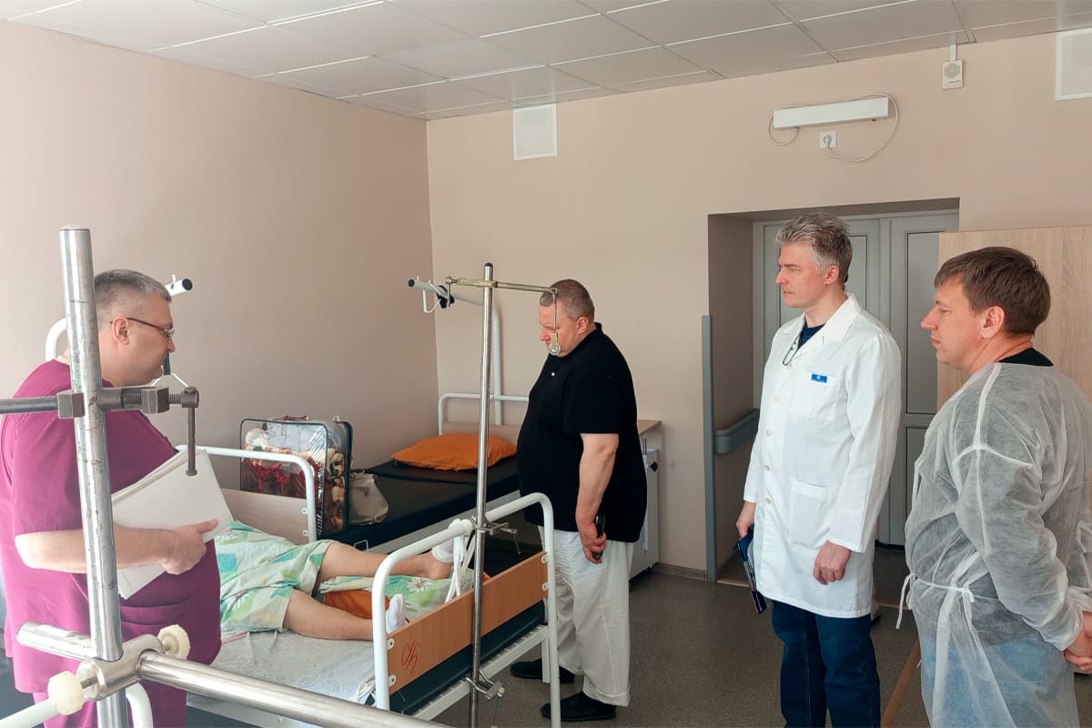 10 апреля заведующий лабораторией повреждений и заболеваний позвоночника и спинного мозга РНПЦ травматологии и ортопедии к.н.м., доцент Бабкин А.В., ведущий научный сотрудник лаборатории травматологии взрослого возраста РНПЦ травматологии и ортопедии к.н.м., доцент Ситник А.А., а также главный внештатный травматолог-ортопед Минской области Чернявский К.С. посетили с рабочим визитом травматолого-ортопедическое отделение УЗ «Борисовская центральная районная больница».