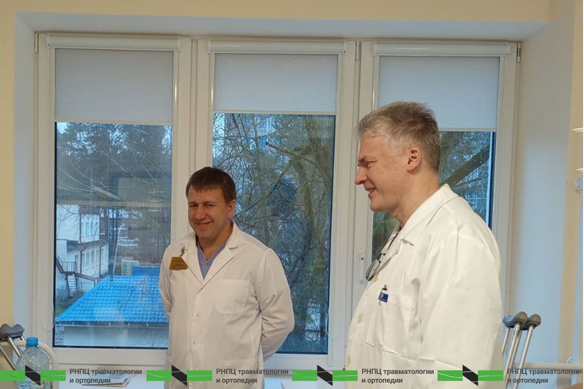2 декабря сотрудники РНПЦ травматологии и ортопедии Ситник А.А. (ведущий научный сотрудник лаборатории травматологии взрослого возраста к.м.н., доцент) и Бабкин А.В. (заведующий лабораторией повреждений и заболеваний позвоночника и спинного мозга к.м.н., доцент), посетили с рабочим визитом Учреждение здравоохранения «Минская ордена Трудового Красного Знамени областная клиническая больница».