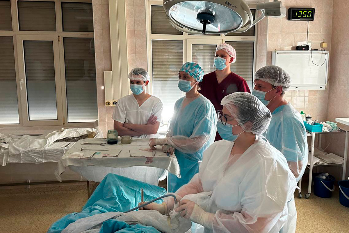 Выполнен обход в отделении, осмотрены сложные пациенты, посещен операционный блок, приемное отделение, кабинет компьютерной томографии и другие критически важные для службы отделения. Выполнена показательная операция – артроскопия коленного сустава.