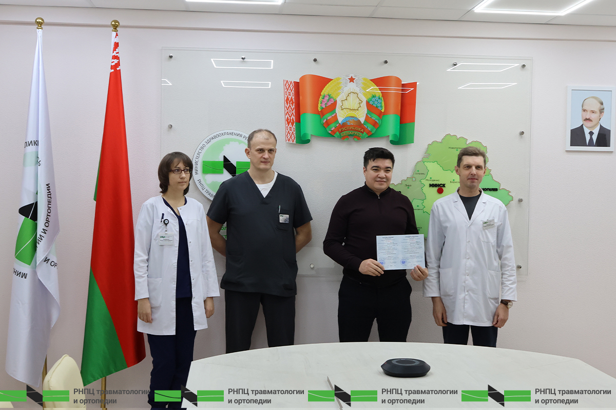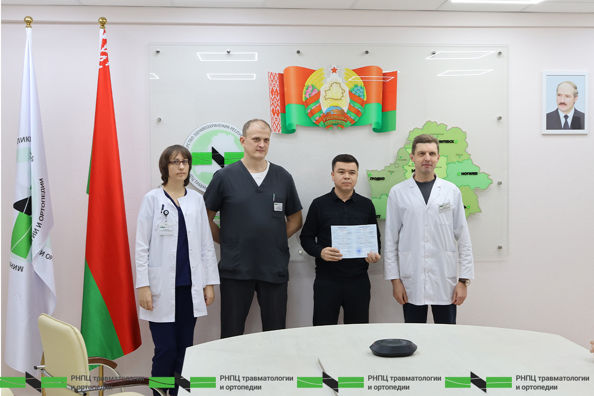 С 1 по 5 декабря на базе Образовательного центра РНПЦ травматологии и ортопедии успешно прошли стажировку врачи-специалисты из г. Самарканд Республики Узбекистан: врачи-травматологи-ортопеды У.Ф. Кодиров, М.С. Наркулов под руководством заведующего нейрохирургическим отделением № 1 С.М. Юрченко освоили программу «Спинальная нейрохирургия» и врач-реабилитолог Д.А. Джуманов под руководством заведующего физиотерапевтическим отделением Е.А. Бандацкой освоил программу «Физическая терапия ортопедических и нейрохирургических заболеваний».